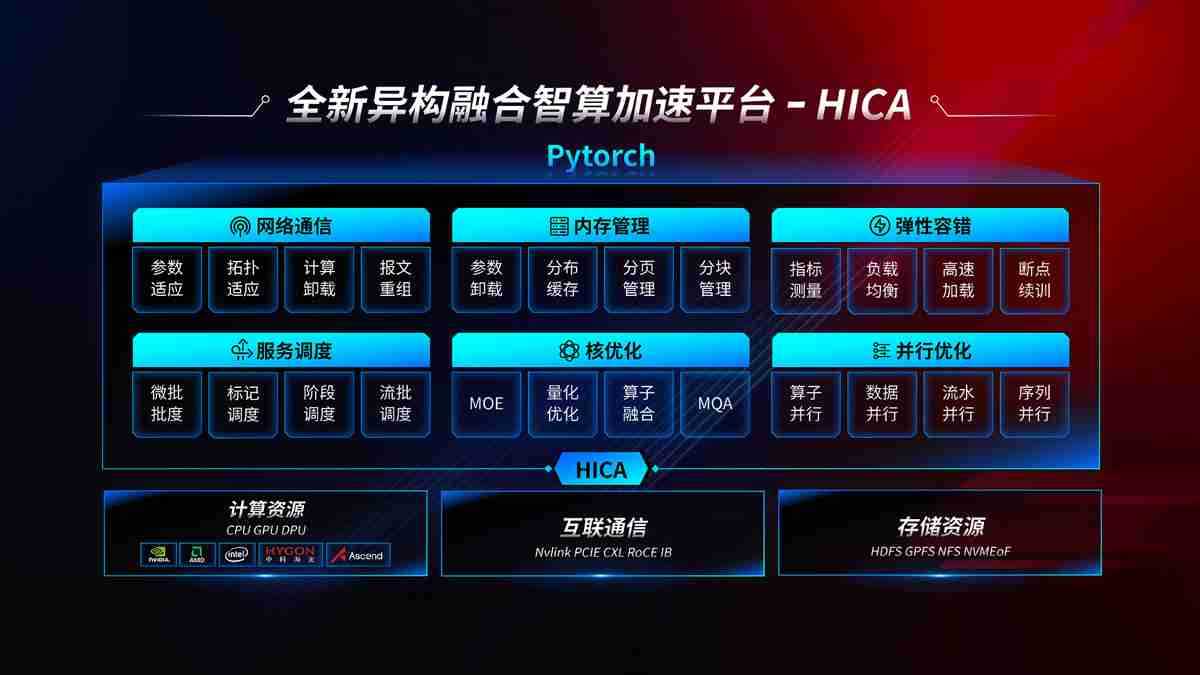通过自研的服务层、、、中间适配层、、、以及调度编排算法,,采用数据并行、、、、模型并行等多种并行方式,,,,把并行计算任务进行有效的分解,,,使其分别由相应的软件栈和算力资源来承接。。。。当GPU资源变化,,HICA可以实时动态调度计算子任务并调整模型拓扑和架构,,以充分聚合各种算力资源。。。。