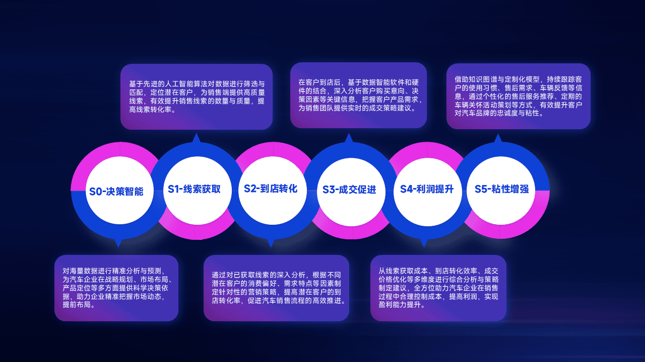 通过拓宽潜在客户来源、、优化线索分配并提高到店转化率,,以增强销售效率。。同时,,,利用线索数据不断优化分析模型,,,,有效提升转化率,,,,扩大营销影响力。。。。